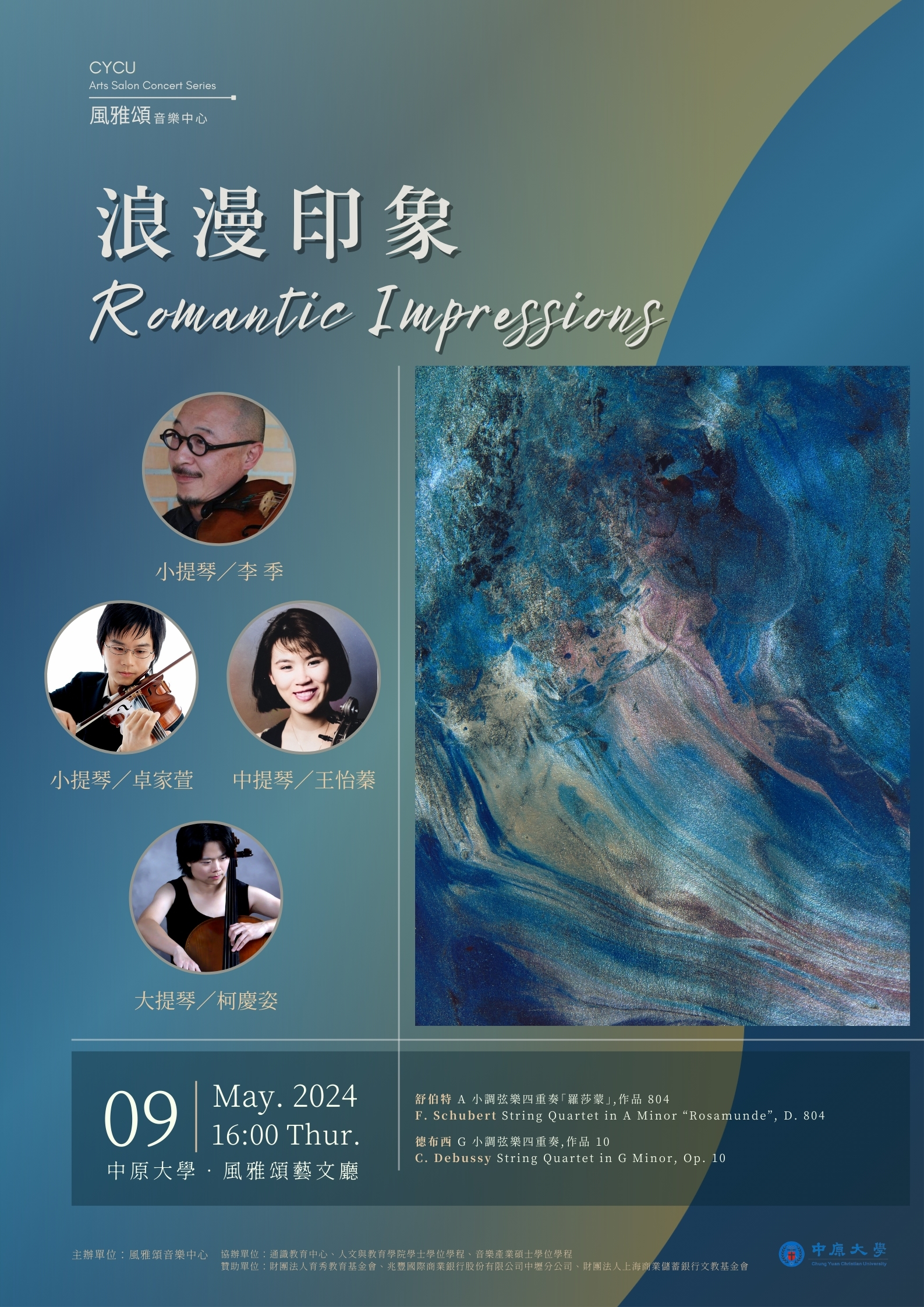 本節目由甘田弦樂四重奏帶來浪漫樂派奧地利作曲家舒伯特《A小調弦樂四重奏「羅莎蒙」,作品804》與法國印象派作曲家德布西《G小調弦樂四重奏,作品10》;甘田弦樂四重由服務於國立臺南藝術大學音樂學系的小提琴家李季與卓家萱、中提琴家王怡蓁、大提琴家柯慶姿共同創立,期待藉由室內樂演出為古典音樂推廣盡一份心力。