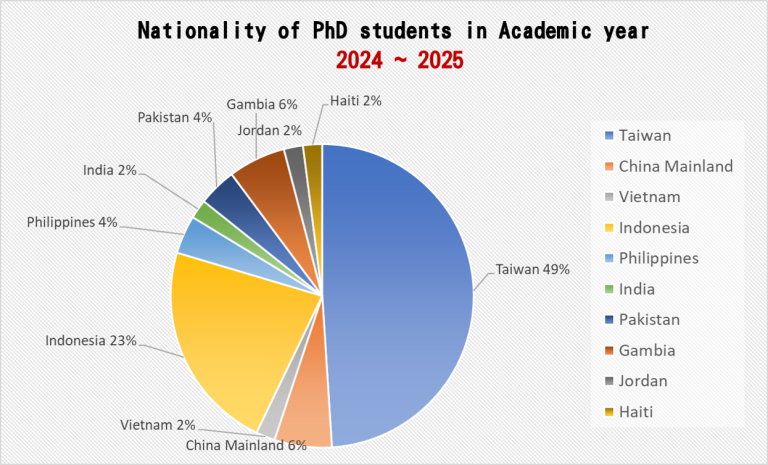 Nationality of PhD students in Academic year 2024 ~ 2025
