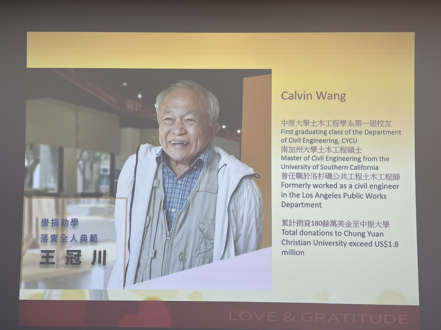 We would also like to express our sincere appreciation to CYCU alumnus Dr. Calvin Kuan-Chuan Wang for his long-standing support and encouragement for international students. His generosity enables more outstanding young scholars to pursue their academic goals and dreams.