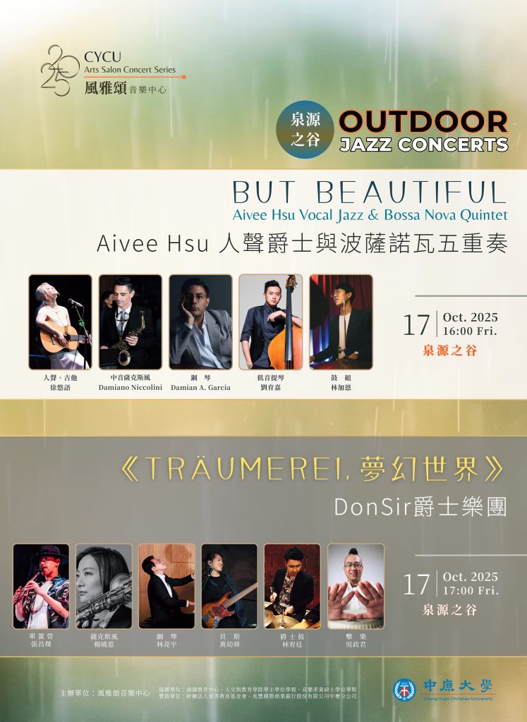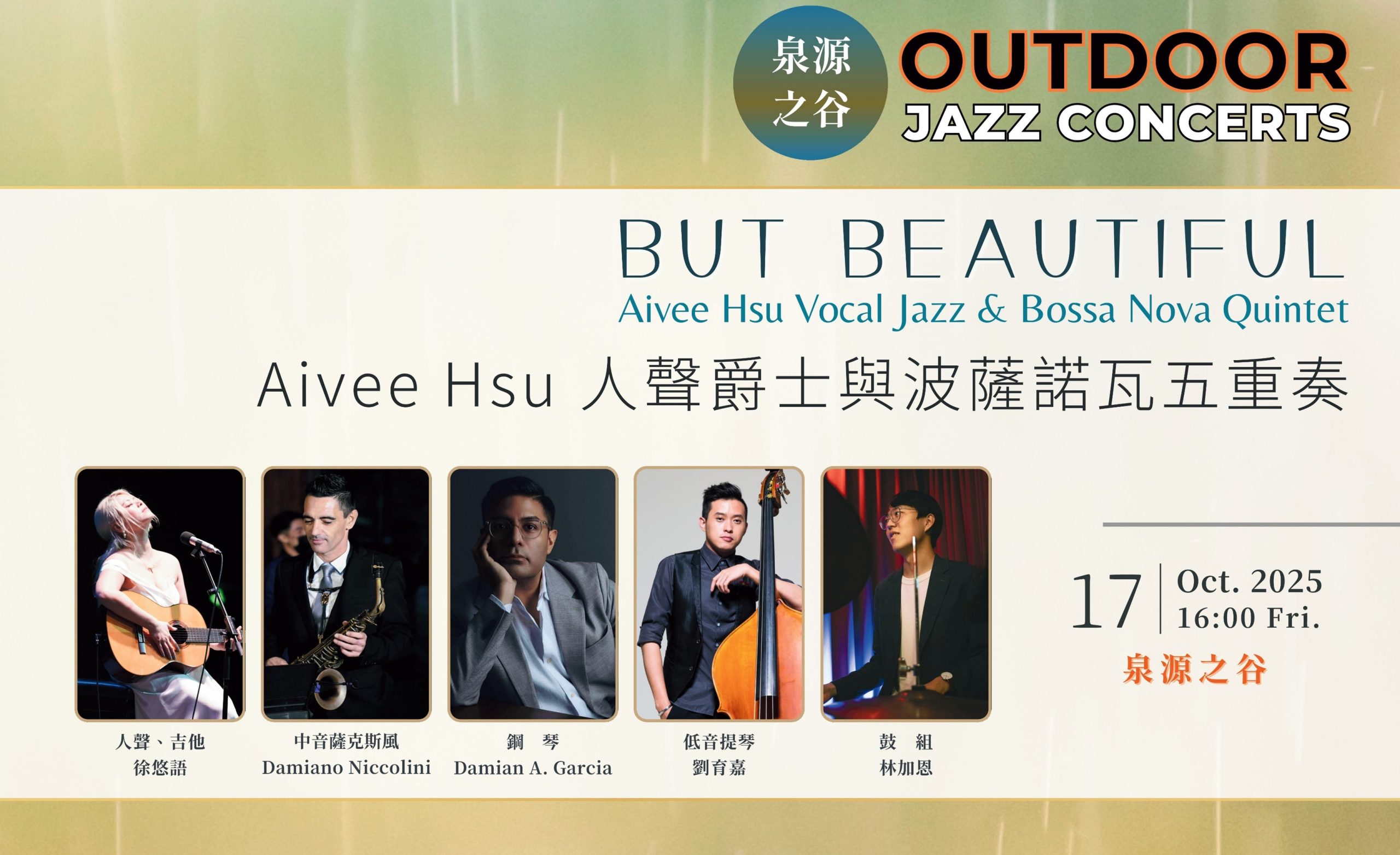 在海邊午後,微風輕拂沙岸,Aivee Hsu 以人聲爵士得獎專輯《But Beautiful》為畫筆,輕描〈But Beautiful〉與〈Garota de Ipanema〉。鋼琴、七弦吉他與薩克斯風編織輕唱,低音大提琴沈靜律動,爵士鼓輕拍心跳;她娓娓訴說專輯製作初衷與錄製花絮,以即興細語引領聆者,於慵懶律動中沉浸波薩諾瓦的柔情畫面。