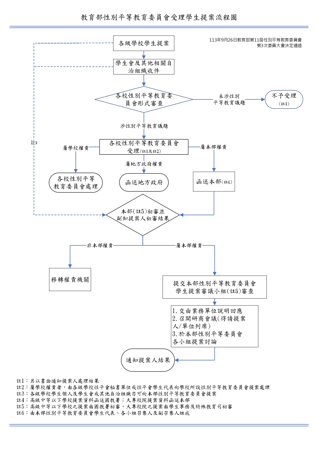 【轉知】教育部性別平等教育委員會115年受理學生提案說明 2025-10-31 最新消息 說明:依據教育部第11屆性別平等教育委員會第3次委員大會會議決議辦理。115年教育部受理學生提案時間及說明如下(收件時間以送達教育部計算)(一)第1次受理收件截止日為115年3月16日(星期一)(二)第2次受理收件截止115年9月15日(星期二) 教育部性別平等教育委員會受理學生個人提案單(docx.) 教育部性別平等教育委員會受理學生團體提案單(docx.) 教育部性別平等教育委員會受理學生提案流程圖 Tags: 115年, 學生提案, 教育部