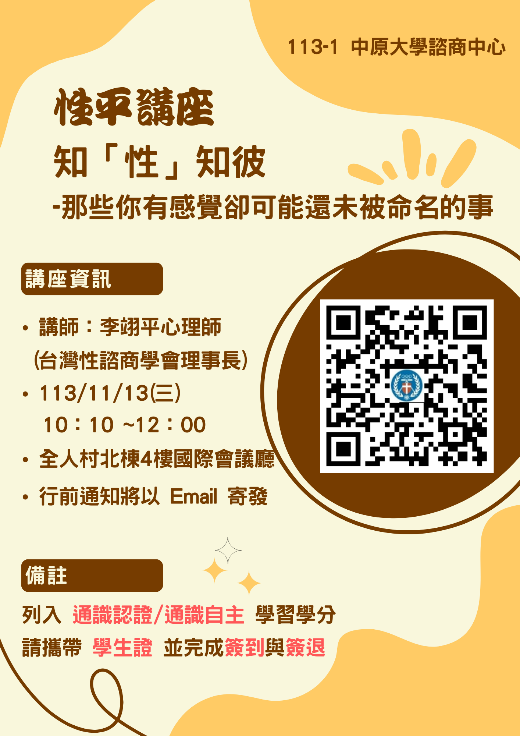 【113-1 性平講座】:知「性」知彼-那些你有感覺卻可能還未被命名的事
