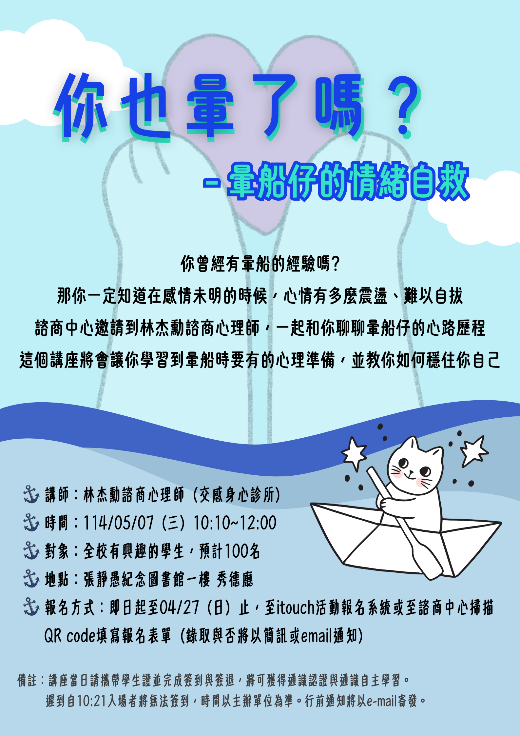【113-2 性平講座】:你也暈了嗎?-暈船仔的情緒自救
