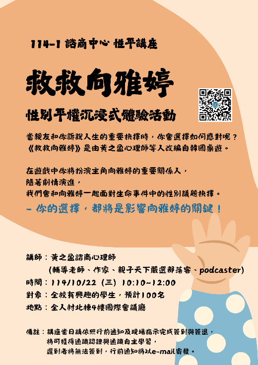 【114-1 性平講座】:《救救向雅婷》性別平權沉浸式體驗活動