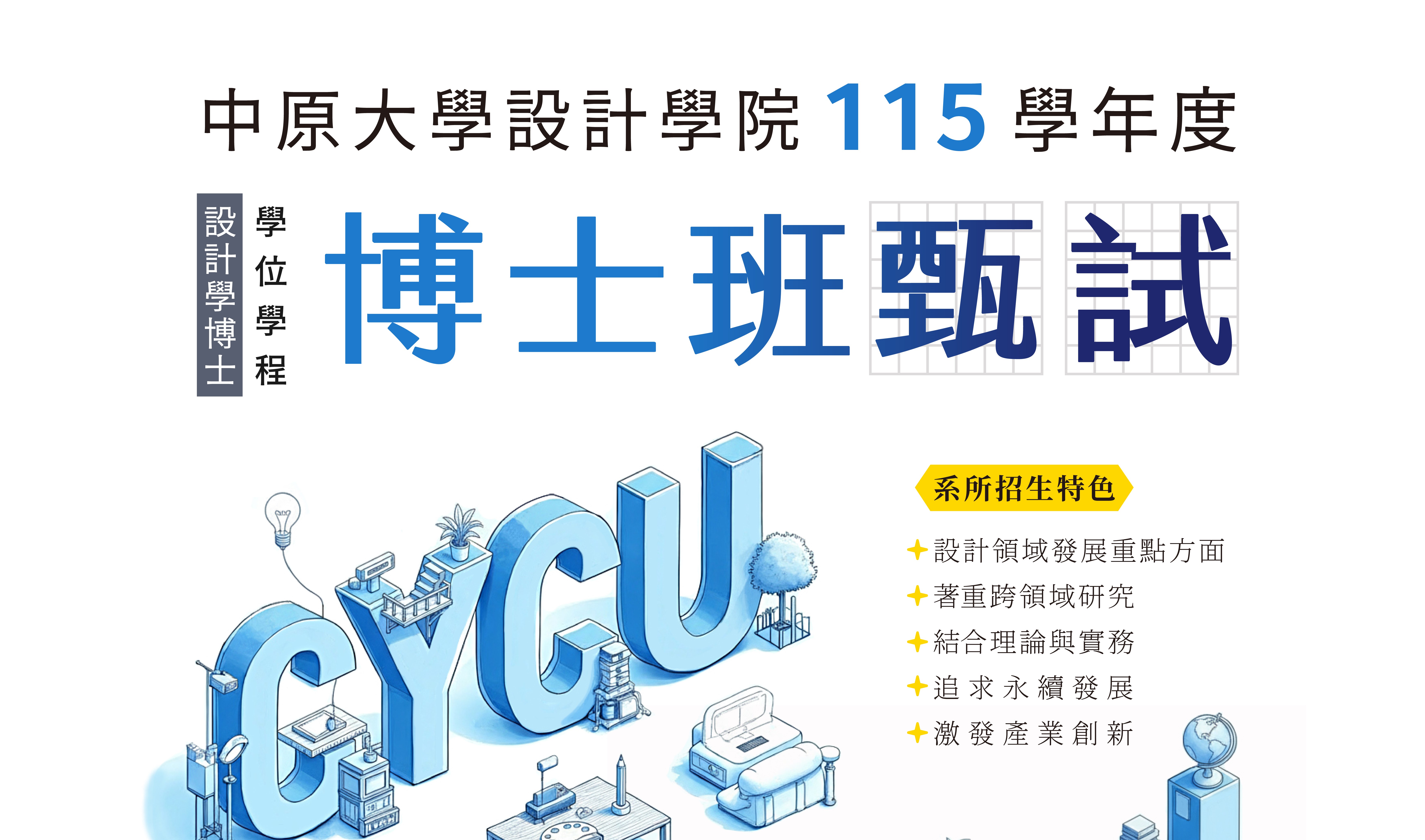 Founded in 1992, Chung Yuan Christian University (CYCU) School of Design is the first professional design school established in Taiwan. In 2004, the Ph.D. program was founded, focusing on a holistic approach education and covering fields of architectural design, interior design, commercial design, and cultural heritage, with the purpose of cultivating harmony between nature and human and incorporating professional skills with academics and concepts.