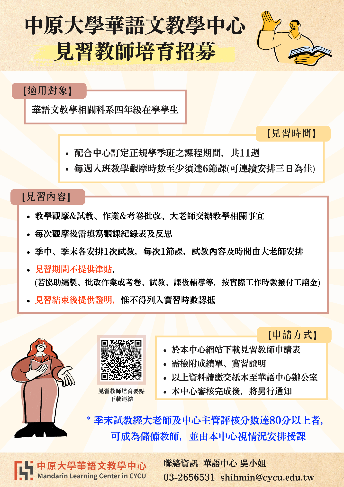 【國內就業】中原大學華語文教學中心:見習教師培育招募