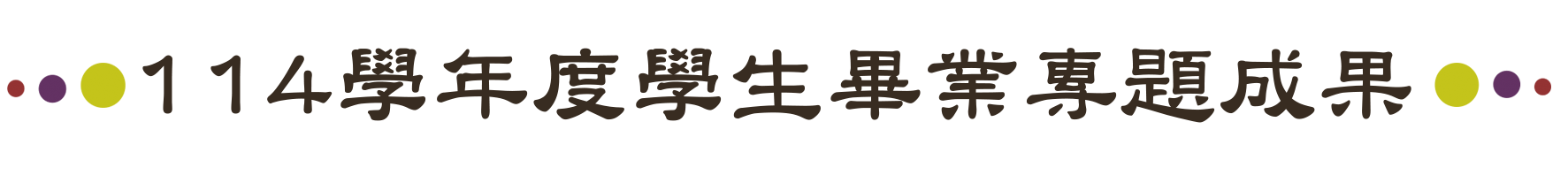 現在位置 : 首頁>系所專區>系所介紹>畢業專題>114學年度學生畢業專題 畢業專題專區 畢業專題檔案下載 畢業專題相關公告 113學年度畢業專題成果 112學年度畢業專題成果 111學年度畢業專題成果 110學年度畢業專題成果