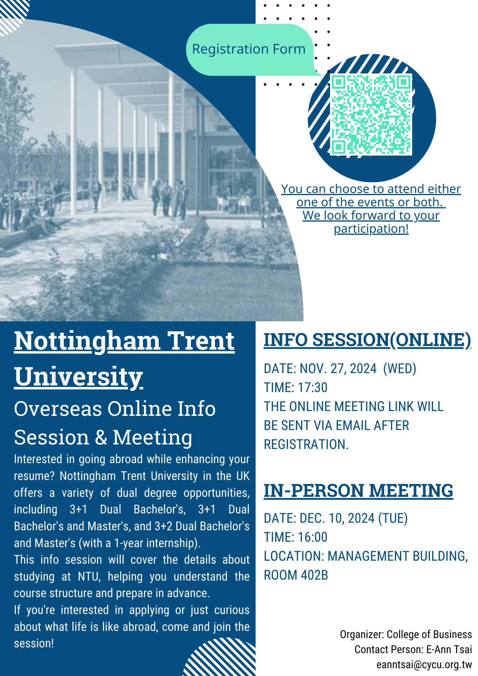 This information session will provide an in-depth explanation of course credit recognition and planning, helping you better prepare for your academic journey. Whether you’re considering applying or simply curious about life abroad, join the session to learn more!